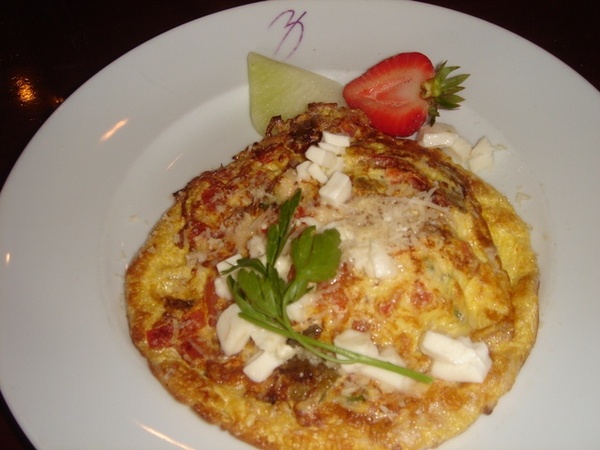 I think the fresh basil add the extra special flavor to this dish- unlike the typical omlete. I also like the mozzarella cheese. I think Frittata is European style of omlete, and what Chia had is typical American style omlete.