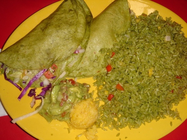 Rena ordered Fish Taco with Rice.....It doesn't look very appetizing - so green... Rena didn't even finish half of it...