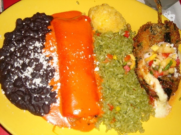 Victoria's combination looks really good - Chile Relleno and Grilled Chicken roasted corn enchilada. The fried stuffed pepper seems yummy. The plaste is so colorful.