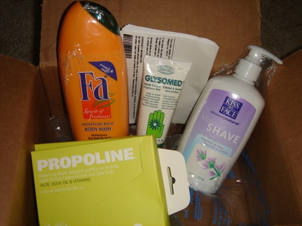 I ordered few items this time: FA Body Wash, Gysomed hand cream, Kiss my Face Shaving lotion, and the refilled of Propoline hair mask.